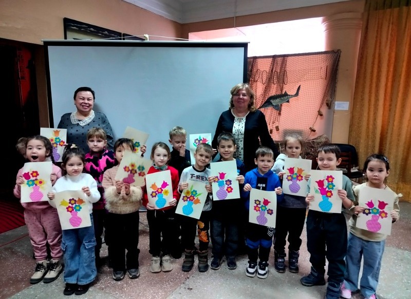 В завершение встречи ребята создали аппликации из кувшина с букетом цветов, которые они подарят своим мамам.