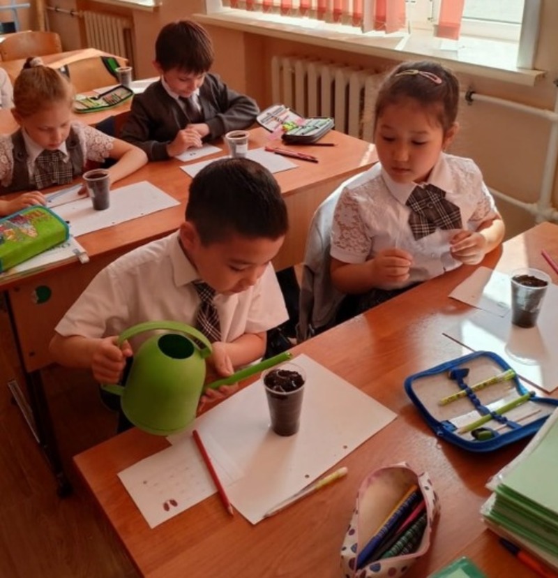 В течение последующих 14 дней ребята при координации советника директора по воспитанию и своего классного руководителя будут наблюдать рост фасоли и вести дневник наблюдений.