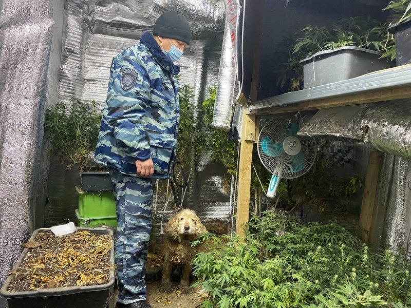 К наримановцу пришли с обыском и в подсобном помещении обнаружили потайную дверь. Проход вел к подземной теплице с кустами конопли.