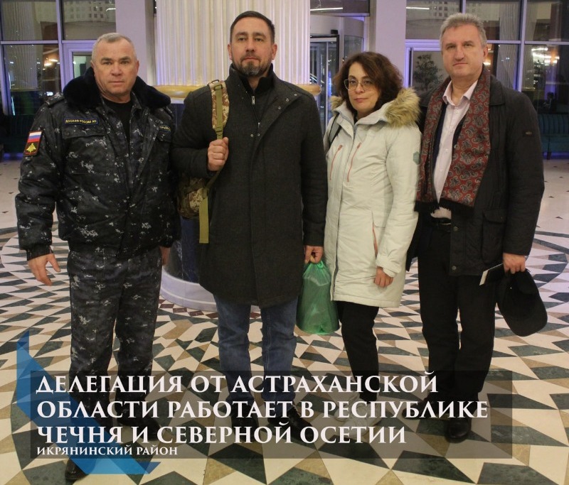 По информации, представленной пресс службой администрации Икрянинского района, делегация от Астраханской области сейчас работает в Республике Чечня и Северной Осетии. В неё вошли депутаты областной Думы Инна Ирдеева, Олег Петелин, Любовь Плющенко, глава Икрянинского района Наталья Бутузова, руководитель Центра социальной поддержки населения Икрянинского района Никита Остроухов и председатель регионального отделения ДОСААФ Астраханской области Василий Григорьев.