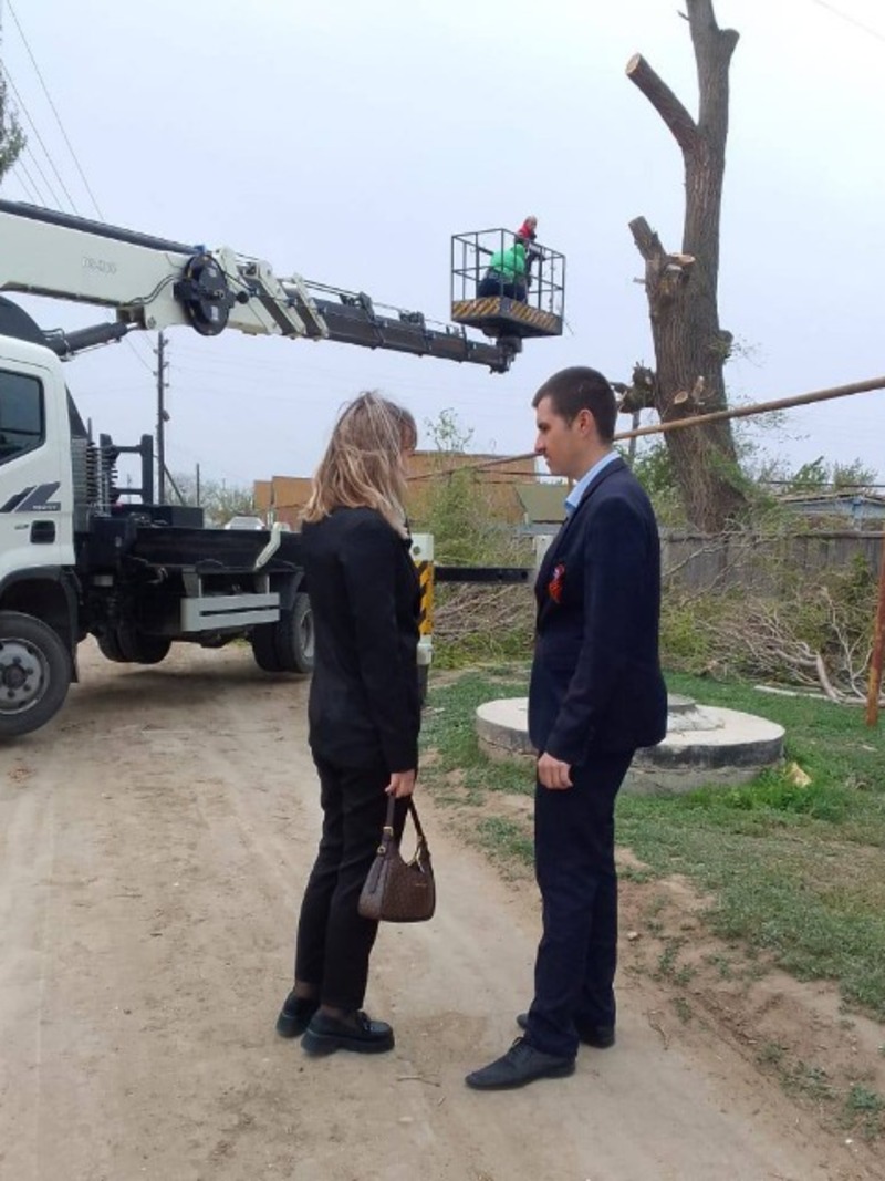 По данному ранее поручению главы Икрянинского района Натальи Бутузовой специалистами Центра социальной поддержки населения был организован сбор пакета необходимых документов на оказание материальной помощи семьям военнослужащих. Глава муниципального образования «Седлистинский сельсовет» Альбина Иванова провела работу по поиску подрядчика, с целью произвести опиловку деревьев. В настоящее время работы в активной фазе. На земельных участках семей бойцов Дениса Овсянникова и Василия Дворникова начался процесс ликвидации сухостоев.