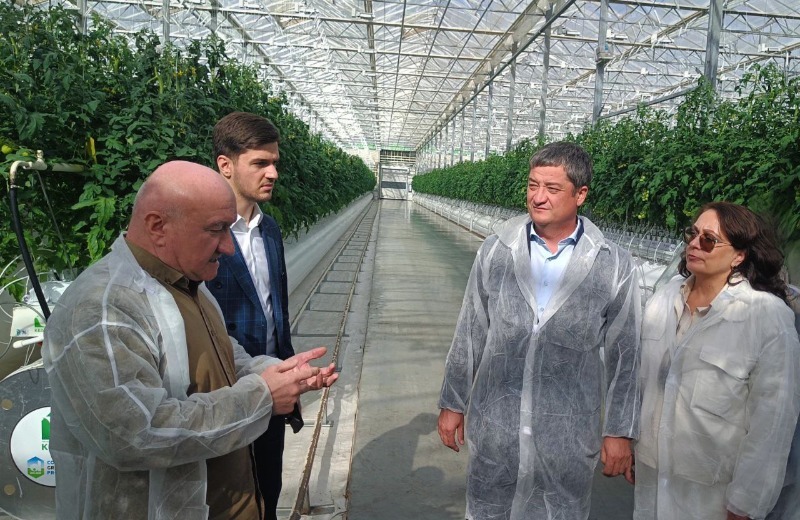 Первым пунктом в программе визита стало самое современное аграрное предприятие «Кедр». На сегодняшний день это крупнейший в регионе тепличный комплекс, где круглогодично выращивают томаты и огурцы. Общая площадь комплекса составляет 47,5 га, из которых 10 га отведено под теплицы. Тепличный комплекс пятого поколения оснащён современным оборудованием, что позволяет значительно сократить эксплуатационные расходы и повысить урожайность. Процесс выращивания овощей полностью автоматизирован. В теплицах круглогодично поддерживаются необходимая температура и уровень влажности, работает освещение.