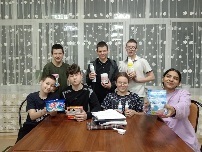 Социальный педагог подробно объяснила особенности ухода за вещами и предостерегла от распространённых ошибок. Ребята узнали о важности сортировки белья: белое следует стирать отдельно от цветного и чёрного, чтобы избежать окрашивания.